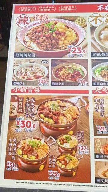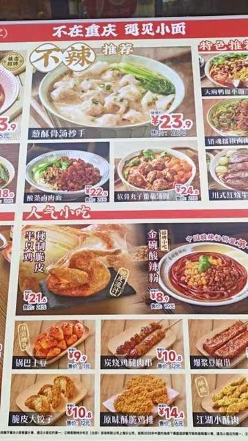 红碗豌杂面 / 金碗酸辣粉 / 大勺肉酱酸辣粉 / 锅巴土豆 / 茉莉冰粉 / 酸菜牛肉面