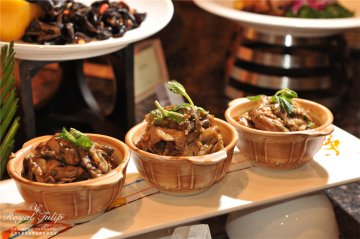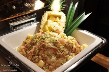 郁金香咖啡厅开在朱家角皇家金煦花园酒店内,正好之前单位开会被安排在这个酒店内进行,所以晚饭自然而然的在酒店内吃自助餐。由于酒店内人不多,所以自助餐的环境也很不错。自助餐的种类还是很丰富的,中西式都有,个人比较喜欢它家的小米熬海参,小米色泽金黄,熬的软糯可口,搭配上发的不错的海参后味道更美味可口。
