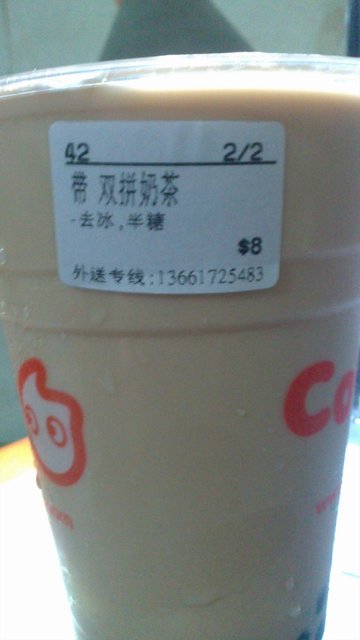COCO的话算是吃的比较少的~一般叫下午茶比较多点~一帮女同事点外卖~COCO的服务员都和我们认识了呢~爱吃西米露奶茶,COCO里的西米露发的很好哦~吃起来蛮软蛮糯的~奶茶的话也还可以~喝多了会发胖的节奏啊~