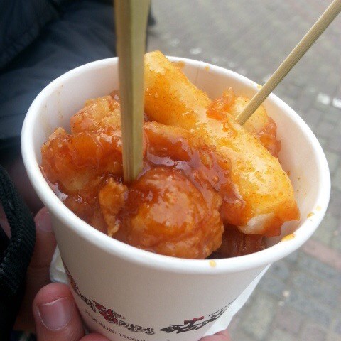 这家刚开业的时候真是的超级火,队伍总是排到很长很长,现在火爆的时候已经结束了,去吃的时候都不用排队了。大sweety是4块肌肉和芝士年糕,鸡肉应该是用的鸡腿肉,很嫩很多汁,甜辣味很不错,也是点的人最多的,里边的年糕也特别好吃,有芝士的,有南瓜的,外酥里嫩的感觉,因为年糕很好吃,又多点了一份年糕。吃的时候尽量热的时候吃,凉了鸡肉就不脆了。