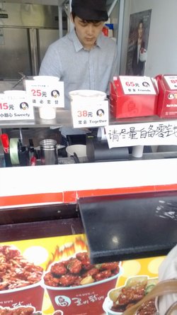 比较随意的一家店,没有固定的开门时间,完全取决于老板的心情,酱料用完营业结束~炸鸡个头不小,只是未到欠佳,还吃到了芝心年糕,酱料不错哦大甜心+ 芝心年糕:25元,这是两份人的套餐哦,蛮多人点的都是这个~查看更多