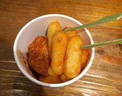 味道挺好吃的,可惜就是价格不便宜,分量真的好小!鸡肉块外面裹着粉炸过的的,脆脆的,鸡肉很嫩的,一丝丝的鸡肉口感纹路很清楚,年糕才一个哦!外面裹着甜辣酱开胃很开胃,刚刚被开胃了就发现已经吃完了!查看更多