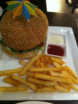 每次吃饭都需要搜寻好久,这次看到他们家的感觉图片还不错么,而且汉堡也算可以吃吃的,团购又还算便宜,就这家吧,虽然离什么来福士远了点,但这样人少啊,我们进去发现就一张桌子有人,期间最多也就三张桌子有人,可能这里中午人会多吧@虾色拉,色拉的量很小,但上面那三只大虾还算是货真价实的,下面就是有很多色拉酱加上土豆拉,生菜丝拉之类的组成,这些东西应该都是刚从冰箱里面拿出来的,冰冰的,量不大么很快也就解决了@蔬菜西柚色拉配烟熏鸭肉,团购里面就这两个是有荤菜的,自然就选这两个啦~食肉么,你懂得。鸭肉就两三片,也很薄,味道还可以,主要是熏的东西不会差到哪里去。这份量就比刚才那个大一些,因为里面主要都是蔬菜了,就是有种苦苦的,吃起来我不太喜欢@鲜蛤肉酱面,这个面条就是普通的意面,味道呢主要就是肉酱面的味道,他在里面加了些蛤蜊肉,当然是比较小的那种,我都不记得我有么有吃到了,不过面条配上肉酱的味道不错,而且刚上来热乎乎的,挺好吃,一碗很快就被我们两个人解决了@酷瑞双层芝士牛堡,我看到很多人评论说汉堡里面的肉怎么怎么难吃,我本来想应该还不至于吧,但轮到自己吃的时候发现还真不咋地。首先是那个肉虽然是用那种碎肉做的,但你至少做成一块饼呢,结果我抓起来的时候都裂开来了,其次就是这个肉怎么那么油,吃进去就感觉有股油腻味,不喜欢,还不如上下层的蔬菜,芝士片,培根,甚至面包。这个汉堡旁边还放了薯条,真心觉得还是薯条好吃,我不仅把我自己的那份吃了,还吃了对家的哈哈@三色冰淇淋球,三个球正常个头,味道分别是巧克力,香草和草莓,我没怎么吃,因为感觉有点甜,而且对冰淇淋也没那么爱,看对家吃的倒是挺香的样子么@原味重芝士蛋糕,芝士蛋糕我是很喜欢的呀,不过他们家的完全不能叫重芝士,只能叫轻吧,芝士味一点也不浓郁,而且还甜了点,反正我就吃了几口就没兴趣了,还是吃吃薯条吧@饮料,这个是团购里面没有的,他居然还有送一听,真不错啊~~~好久没喝碳酸饮料了,喝的我好爽,最后全被碳酸饮料撑饱了他们家服务还是不错的,态度很好,就是这个做的。。。查看更多