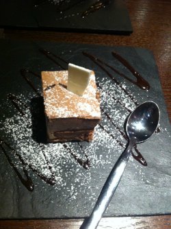 到大光明看电影于是到这里随便吃一点点 看团购图片感觉很一般 88 的2人晚餐没想到上来吓一跳 好大的量 绝对性价比啊 建议他们可以把团购的图片拍的再好看点这地段才8个人买 不应该的金枪鱼土豆色拉 好吃 土豆很大块很软 金枪鱼放的也很多 吃这个我就能饱特制烤春鸡 也是实打实的半只鸡了 烤鸡很香 我吃了好多 朋友都没吃多少酷瑞牛魔王配薯条 看图片感觉很一般 但是上来的汉堡很大个头汉堡肉也很大一块 不过汉堡肉我觉得质量很一般 感觉不够水嫩吧味道也很一般 就是个头大 还有放培根 巧克力慕斯也蛮好吃的 我感觉比香蕉蛋糕好吃 香蕉蛋糕就感觉普通点饮料都是给听头的 服务也不错 蛮客气的 真心建议 图片拍好点哦 查看更多