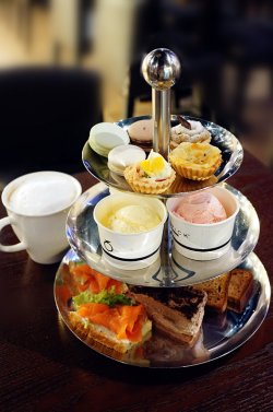 下午茶时间,来到仙乐斯广场的酷瑞西餐厅,点了一个他们家新出的三层塔的英式下午茶甜点,还附送一杯咖啡或者奶茶,有种回到英伦的小清新味道。品尝着下午茶,体味这个快节奏都市里少有的闲暇和惬意。精致的摆盘,古朴中带着一点点时尚的感觉。遂有食从相中来,心动则食美。好吃可口的马卡龙,一口酥心,两口舒心。三文鱼土司面包。新鲜的三文鱼切片加上烘烤的恰到好处的面包。瞬间补充下午的工作能量。扑鼻而来的淡淡抹茶香味,里面包裹的奶油细腻柔和,有种入口即化的口感。查看更多