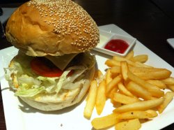 牛魔王配薯条~汉堡真心大呀,口感比卡乐星还要好~切开一半,吃了一半的一半就已经饱了~盖在上面的汉堡面包都很大,外皮脆脆的点缀这很多芝麻~香喷喷呀~牛肉饼有点带着胡椒,微微辣的感觉非常棒~套餐里面还有大薯条,也类似卡乐星那种大薯条~很有质感~也撒了点黑胡椒~蘸酱真心好吃呀~提拉米苏万年青的样子做的很好看~还真的有万年青饼干呢~小时候的味道呀。巧克力也好吃~就是吃到后面感觉太甜了呢现在有团购,性价比还是很高额~查看更多