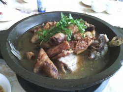 重庆三峡鱼庄张镇厂门口村。吃了一个他们家的那个特色炖鱼,叫做家常炖海杂鱼,按斤计算的,58块钱一斤。就是各种各样的鱼都顿在一个锅里面,一个菜里面可以吃到不同于地味道,狠特别呢。里面有那个黄鱼、带鱼、扁口鱼还有其他叫不上名字的鱼,除了这个鱼,里面还有各种的花蛤,还有海螺,很好吃呢,那个鱼汤泡米饭吃也很不错呢。查看更多