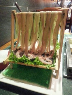 想来这里吃,1想念火锅,2想吃鲶鱼,3想吃鲶鱼现在一品鲶鱼是多,但也真心好吃,一大盘都是的,辣辣的,新鲜的,嫩嫩的~一定要配辣锅才爽黄喉很脆很嫩,非常不错的蘸料是自助的,水果吧是最人气的地方,水果切的大又甜,重要是更新很快,服务很好,待客如道!但不喜欢鹅肠,感觉很腥的查看更多