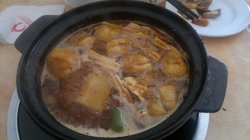 一般去那里都会要中煲,分量适中,两个人吃差不多。里面可以吃到鸡翅膀,鸡胸肉等等,翅根也能吃到,翅根泡在里面煮的很入味。鸡公煲里面的鸡肉不是特别嫩,但是还能入口。喜欢他们的汤底也就是酱料味道,很浓油赤酱甜甜的很鲜,所以刷菜放进去不用蘸调料就很好吃,特别喜欢里面放大白菜和油面筋,菜吸饱了汤汁很好吃查看更多