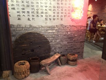 地点:河东区六纬路与六经路交口嘉里汇负一层环境:店里装潢古朴中流露现代感,古旧的木门、斗笠改造的灯罩、木窗棂、泛黄的老照片、斑驳的墙壁都有带你步入山城小镇的感觉。服务:服务生对菜品和价格烂熟于心,有问必答。菜单采用表格式设计,放在桌上,客人自助勾选菜品,之后服务员负责核对下单。很方便快捷菜品:各色面自不必说,小吃推荐“小捣蛋”——皮蛋豆腐放在一个小罐里自己用杵捣碎吃。“豆面脆糍粑”——Q弹的糯米过油炸了,外面裹上豆面吃缓解油腻感又有豆子的倾向。“陈皮酿豆干”——豆干本就有滋有味,加上陈皮的爽口感,增加了养生的元素。对于吃惯了大鱼大肉的城里人来说,感觉爽口别致。“荤荤豌杂面”嫩嫩的豌豆、炒香的肉末和少许青菜与爽滑的面条搭配在一起,十分鲜美,又清爽不油腻。一碗的分量不大,方便客人可以多点几样品尝。…查看更多