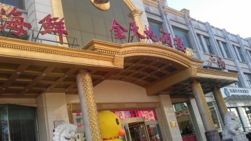 这家店的地址在河北区金纬路上,和狮子林大街交口的位置.门口的车位很足,开车过来的朋友不必担心.店外装修的金碧辉煌的,蛮气派的,适合办各种宴席.进门处的旋转楼梯非常适合拍照,很有气势的说。哥哥的婚宴是在这里办的,直接上的二楼大厅。中厅不大,每个包间的冷气给的很足,房间也都很宽敞。装修的看起来还是蛮不错的,但是菜品质量真心一般。印象特别深的是油焖大虾居然都没有味道,只是挂了一层甜味的番茄汁而已。其他的菜也都没什么印象了,就是普通小饭馆的水平,吃不出特色来。菜量适中,盘子都很大,但是量并没有那么足。临走的时候搬酒,服务员还不让坐电梯,说会超重,汗•••••••自己吃饭的话,应该不会再来了,总体来说就是个摆场面的酒店,不实惠,追求菜品质量的同学请绕行。感觉服务员都冷冰冰的,虽然是办婚宴,但丝毫没有任何喜气,看不到任何笑脸。这点还是应该加强的~毕竟只有菜品好吃、服务优质,才能赢得更多的回头客啊。