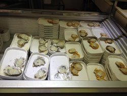 朋友聚餐选来选去还是自助餐方便,选的平时晚上,看评价说是人多所以5点过就去占位子了,人没有想象中多,在收银台验证了券号以后交了压金就可以进场用餐了,菜品还是挺多的,热菜、冷菜、小吃、甜点、水果、汤品都有挺丰富的,饮料是机器打的,没有单装的,除了啤酒,烧烤的菜品还是蛮多的,有盒装的,也有用盘子自己人取的,扇贝、生蚝味道不错,只是烤的时间比较长,脑花、牛肉、君花都是码了味的,烤起来吃味道不错,蟹太腥了,9点过的时候就开始提醒收餐时间9点半