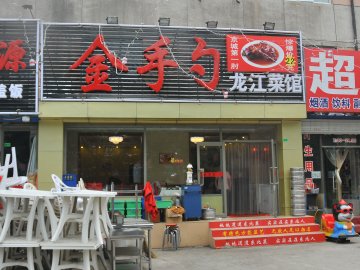 金手勺建材西路临9-109号西三旗桥东.地方很好找的呢,一家东北风味的餐厅。他们家的那个酸菜白肉很好吃,夏天也是有的呢,一个小砂锅,分量不错,白肉不是很多,不油腻,大部分都是酸菜呢,细丝的那种, 颜色比较黄颜色的感觉,口感很酸爽,白肉也很酸,很好吃哦。