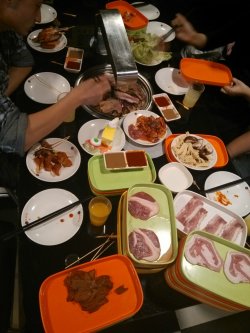 周末的时候和同学一起来这里吃的烤肉 早就想吃了一直拖着 快放假了我们就约好一起来吃了 这的环境还可以吧 朋友聚会是个不错的选择 韩式的烤肉 烤肉的种类很多 有各种肉种, 培根是大家比较喜欢的 烤出来味道很香 肉质鲜嫩 以前我都是那么吃 原来还可以卷着生菜吃 还有各种水果,蔬菜 都比较新鲜 …查看更多