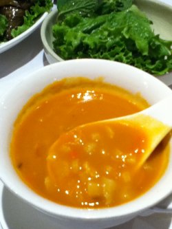 蛮有名气的越南菜馆,特别喜欢这家的环境,布置得虽然精细,但是还是有东南亚风情。喜欢这家的酸辣虾汤,还有柚子鲜虾沙拉,这两样也是在这家餐厅里面比较有特色的。酸辣虾汤,红红的,但是不会太辣,略微有点酸,但是这个酸也非常刺激食欲。柚子鲜虾沙拉,里面的虾子很嫩,而且也是保留了酸的口味,沙拉的分量还不少。人均消费在一百元左右,综合来说性价比还是蛮适中的。查看更多