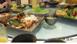 朋友生日请客吃饭,这家是吃越南菜的,店面环境属于简约款的,没觉得有什么当地的风情,不过蛮干净的,服务态度不错,上菜速度也蛮快的~鸭胸虾片,一片炸的蛮多的脆饼+菠萝片+鸭胸肉+甜辣酱,鸭胸肉带皮的,烧烤的味道,蛮嫩的~南乳烧鸡不错,皮很脆,比超市货好吃很多呢~南乳酱味道的烧鸡还是第一次吃,蛮好味道的呢~查看更多