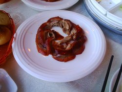 爱抢购抢了一只烤鸭,正好和姐姐姐夫,姑姑姑父和亲家爹妈来吃饭。定了个包间,人还真不少,虽然地处房山,但是装修依然很豪华。周边比较荒凉,基本就是工地和住户,都是那种高高的公寓楼,交通还可以,下了车走一百多米就到了。#精品烤鸭# 是现做的,丝毫不减量,没因为我用的是爱抢购就爱搭不理的,现片的烤鸭非常棒。#麻辣馋嘴蛙# 特别好吃,里面有青笋,还有好多大只牛蛙,麻辣十足,菜量大。#老北京牛肉# 炖的十分软烂,味道很香,下面的土豆都浸入浓浓的牛肉香,特别美味。#松鼠桂鱼# 超赞的,糖醋味儿很浓,鱼炸的很酥,脆脆的又不会腻,被扫荡一空我连脑袋都啃掉了~#藕盒#也很好吃,炸过之后翻炒浇汁,色香味俱全!我看了看周边好像也就这家还算是比较大气和豪华一点的店了~怪不得那么多人呢~~…查看更多