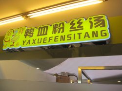 这家店的地址在崇文门外大街3号新世界百货青春馆三层美食天地,,环境还是很不错的,人也还很多,鸭血粉丝汤做的还蛮好吃的呃,里面的鸭血很入味,吃着挺滑嫩的还,鸭肠很有劲道,脆脆的很好吃,粉丝很多,煮的有点软软的,口感很棒,价格也不是很贵,十多块钱一份,量还很足、查看更多
