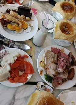 环境很不错的一家自助餐厅,价格小贵,但是食材的种类真心是很多,吃着口感和味道也是很好的,水果沙拉用的水果很新鲜,喜欢喝奶油酥皮汤,味道香香的,哈根达斯每次都要吃两三个,北极虾很嫩查看更多