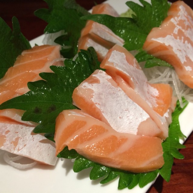 金鱼居酒屋的食材都是挺靠谱的,分量也挺足的,吃着感觉性价比不低的了。三文鱼刺身就挺厚道的,每一片都很厚切,鱼肉的口感够鲜滑,特别的有弹性,不是一种软趴趴的感觉了。吞拿鱼沙拉也不错,微酸的味道,鱼肉很细腻,还加了一点蛋黄酱的。