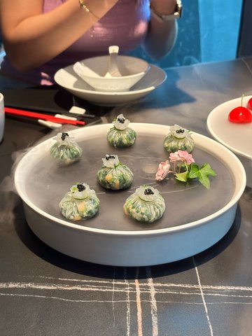 今天去了深圳福田星河Coco Park找了这间主打精致传统浙江菜的「钱塘潮」餐厅环境以黑色系装修风格,非常有心思!门口至里面都以流水+烟雾营造出仙境感觉💨🌫️加上树木点缀飞鹤🦢氛围感十足环境舒适宁静,店内设有包厢,无论一家人聚餐或者朋友聚会都好适合💯 陈皮白茶 ¥38茶味比较浓烈, 带出淡淡陈皮味, 感觉都不错 北京片皮鸭(半只) ¥168皮脆肉滑,山渣条酸酸甜甜加青瓜条、京葱、鸭酱一起吃一点都不油腻 贵妃樱桃山药 ¥48用山药蓉、果酱啫喱试制成樱桃造型,吃下去没什么味道🙈以干冰作陪衬, 形成仙气飘飘既视觉效果, 胜在打卡一流📷 云腿野菜石榴包 ¥42卖相好精致, 石榴包上面有鱼籽里面是碎果仁+虾仁粒, 很有口感…查看更多