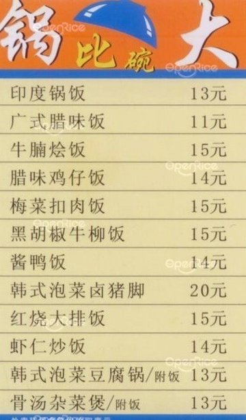 挺小的一家店面,去的时候里面也没什么人。东西还可以吧。价格也还马马虎虎,不算太贵。泡菜豆腐锅里面内容蛮丰富的,东西味道也不错。腊味鸡腿饭,上面的东西很多的,好吃。还有海鲜泡饭,印度锅饭,这几个口味也挺不错的。…查看更多
