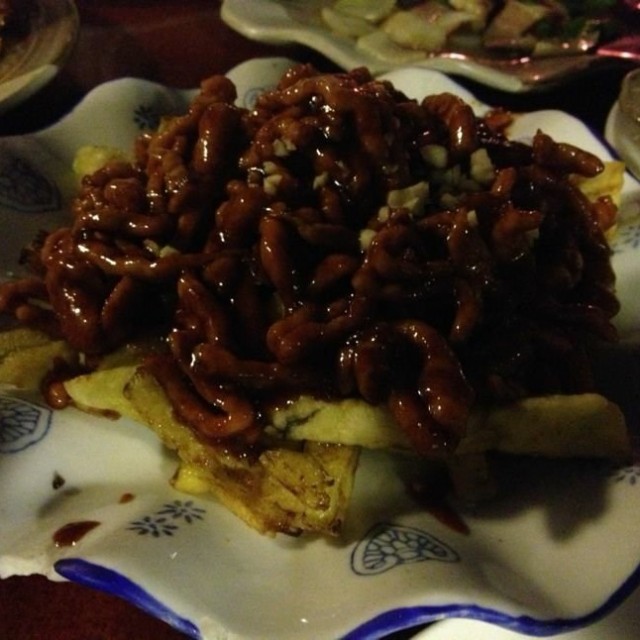 这家锣鼓洞天就在南锣鼓巷附近,也是到附近逛的时候溜达到此处的,名字起的很有意思啊,门脸也是古香古色的,进到里面用餐区有两层,因为还没有到饭点所以我们在一层点了几个家常菜,鱼香肉丝、宫保鸡丁和铁板风味茄子。个人感觉宫保鸡丁还可以,甜辣的味道刚刚好,鸡肉白而嫩,就连里面的葱吃起来都入了味道,茄子因为是铁板的所以放了一段时间都没有凉,也属于口味偏重的菜了,到是鱼香肉丝感觉偏甜了,不过拌米饭和茄子一起吃到是也不错。