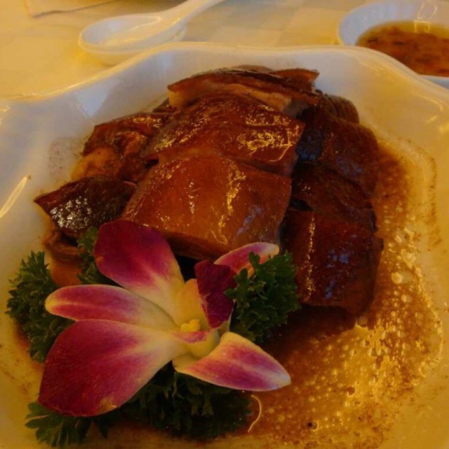 锦都久缘餐厅价格也不便宜, 和朋友来过几次的,觉得店子的菜有个特点,就是粗菜精做。砂锅海皇粉丝煲,分量很足,看看砂锅的大小就知道了,上面摆满了各种海鲜,最贵的应该就是九孔小鲍鱼了,新鲜鲍鱼来的,不是干鲍鱼,汤汁是海鲜汤为主的,下面的粉丝其实垒的挺高,很爽滑。吊烧一品鸡我也蛮爱吃的,属于烤鸡一类的了,鸡肚子里面塞了好些东西的,味道挺香,有点香草的味道。
