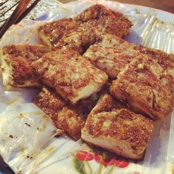 晚上约好专门跑搭配桃花岛去吃长毛烧烤,等熟人带路才发现就是个门面,里面房间打通变成一个大通间。晚上生意蛮好,和银丰差不多自己选个位置坐下,他家也没有菜单提供,估摸着烧烤的种类也就那些。点了干子,他家是白色那种,上面放了很多的辣椒面孜然粉,虽然是干子但是蛮嫩,口感比豆腐要稍稍老点。干子挺入味的,表面有点焦硬里面很柔软蛮好吃。鱿鱼个头不算很大弄得比较干净,上面的筋膜都撕去了。鱿鱼上面涂了很多调料,所以吃起来很有些咸,很耐嚼,不过鱿鱼须蛮少。肉串味道蛮好,肉特别入味而且烤的很香,肉软不塞牙,做法和味道都比较地道。素菜点了土豆、金针菇、黄瓜和藕,味道其实都蛮好吃,特别是土豆超级麻辣可口,而且烤的粉粉的。黄瓜切成小块吃起来带着黄瓜自身的水分脆脆的,配上盐和胡椒辣椒面吃味道也不错。香菇很肥厚这个东西本身挺吸味的,所以吃起来滋味足不说口感还蛮好,特别像在吃不油的五花肉。他家还有一样特色小吃就是锅贴,特点就是外皮基本上是脆的,整只锅贴看起来更像是在油锅里炸过,金黄酥脆,里面包着白菜,沾点蘸料吃味道很好,一点不油腻,大白菜馅子吃起来还蛮甜。这个就和翠华里面的炸馄饨异曲同工吧。他家烧烤名气已经很大了,生意特别好,虽然种类也不少但是基本上没有难吃的东西,每样都还不错的,当然有一点就是烧烤的咸味很重,味道不错价格也还实惠,很好。…查看更多