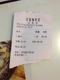 在微信上抽中开饭喇的玫瑰拿铁一杯~如此高温的天气,大伏天气仍旧去探店,绝对是吃货的纯粹精神在作祟~GapYeah Cafe(间隔咖啡馆)位于源深体育中心~论交通还是很便捷~附近有地铁六号线~很方便出口出来即可~还是很醒目的店招,虽然门面不算很大~但步入GapYeah Cafe(间隔咖啡馆),还是觉得装潢的很清新的feel,划分成上下二层,打理的很明亮干净的~咖啡馆内的小饰品也很多,墙上还有老板和老板娘出游的照片及文字等等~桌上的小饰品也很有特色,来自垦丁~看的出经营者couple是很有情调滴~帮老板核实下了兑换号,要的是玫瑰拿铁冰饮~再点了一块抹茶慕斯蛋糕~20大洋/块~身为抹茶控,还是抹茶点一份~由老板娘调制的玫瑰拿铁~蛮大的一杯,扫去闷热之感,冰爽的咖啡配著稍许甜腻的抹茶慕斯蛋糕~咖啡的味道还是蛮香浓的~回味还不错~抹茶慕斯蛋糕,非咖啡馆自制,由供应商专门提供的~觉得抹茶慕斯蛋糕稍许甜了些,如果洒些抹茶粉微微的苦涩就好了~抹茶慕斯蛋糕内还夹杂些黄桃颗粒~随便切切啦~总体来说,在此下午茶小歇的确很不错~老板和老板娘态度还是很nice的~店虽小但打理的很有特色,当然啦咖啡馆都要有wifi提供的,网速还是很稳定的~在此消磨一个下午还是蛮惬意的~空调也很开的很足,对于附近的写字楼小白领们来说可谓是下午茶小歇的好去处之一~…查看更多
