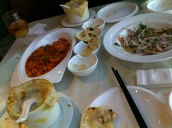 昨天下班过来吃的而环境还不错的一家餐厅 服务员比较热情 要了一份锅贴小唐菜味道还可以的锅贴很好吃 鱼翅五谷精华羹看着还可以五谷搭配鱼翅口感还不错 很好吃 鲍鱼汁不错 很好吃 汤汁比较浓的