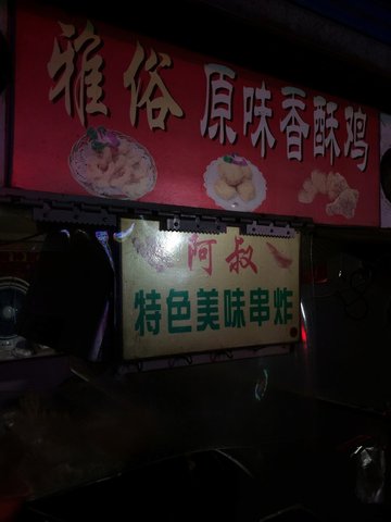 2014年06月01日(周日)之前貌似店铺还说要搬迁 后来也没有搬 还是在原位 香酥鸡和隔壁的烧烤永远生意那么好 夫妻老婆店 各执一值 这次吃的时候明显感觉应该是嫩肉粉或者味精放多了 有点过了的感觉 没有以前好吃~------------------------------2012年10月08日(周一)时隔一年多 雅俗的这个价格突飞猛进啊 如果不看之前的点评 还不知道居然有那么大的差别●小肉:3元/10串●香酥鸡:5元(起)●里脊肉:1.5元/串不过味道依旧非常的给力 偶是蛮喜欢吃他们家的香酥鸡的 不过某胖胖说没有甜爱路阿姨的那个好吃第一次发觉原来”呀叔”不是上海呀叔 到了晚上生意依旧是很好 呀叔说他基本上每晚20:30关门~------------------------------2011年06月12日(周日)走啊走的又走到这一块地方了 当然不能放过雅俗家咯 生意依旧很好 前面排队的人好几个阿叔很淡定的一个个来 速度绝对ok 脑子哈清桑 味道依旧 只不过因为吃饱了的关系 香酥鸡么上次米道嘎好小肉是1元/6串哦 是跌价了?还是上次偶失意了呢 呵呵------------------------------2010年10月04日(周一)【里脊肉:1元/串】第一口咬上去就觉得很不一样 甜甜的 很吊鲜 肉很嫩 第一次吃到里脊肉是蘸过酱的 真的很不错 非同寻常【鸡心:1元/串】炸之前阿叔在面粉里面先滚了下 炸出来的果然很嫩阿【香酥鸡:3元/份】3元钱很大的一袋 一个牛皮纸 装也装不下 瓦 那个胃口瞬间上来了 味道呢 个人感觉比起里脊肉稍稍有点逊色 不过还是很好吃的【小肉:1元/5串】还是一个字:嫩 ,第二个字:鲜个人点评:【口味】很好很赞 阿叔的这个蘸料真的是无敌了 不管吃什么 吃之前只要蘸一下 瞬间眉毛掉下来【环境】还算是个小门面的 大红的招牌很是醒目 连店名都取得很上海特色【服务】阿叔很耐心很稳则 不错 问有没有外卖可以送 阿叔很幽默的说 可以电话叫隔壁的烧烤的时候 顺带叫上他的东西 想法很好回答机智阿【人均】小吃的价格很平名