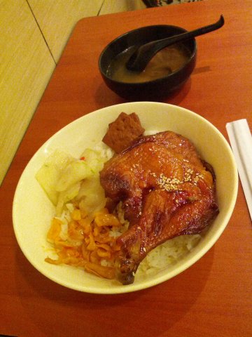 台湾简餐店,周末逛好乐购采购了点生活必须品后随便吃吃的~这家的蜜汁鸡腿饭的点击率蛮高的,味道确实是不错的呢~鸡腿肉很大的一个,外皮还有点焦脆的,甜甜的味道,蛮灵的,手枪腿,鸡肉超厚实,又嫩有多汁,米饭有点硬,胃口小的女生估计一个鸡腿就饱了~20几块的套餐还蛮不错哦~…查看更多