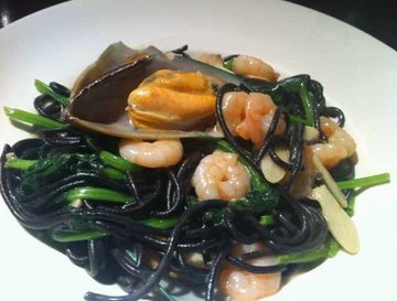 这里有半自助的,但是价钱也偏贵了些,再说我自己也是吃不了多少的人啊,所以就果断的放弃了。这次来就只点餐可以了,反正能吃多少就点多少,价钱本身就比较贵,但我就喜欢这里的环境,很舒服的。这里的海鲜墨汁意粉很不错的,我觉得是比较有特色的,以前吃墨汁意粉的地方不多,而这里的算是做得比较美味的那种,吃起来味道很鲜,而且放的海鲜也足够,不像其他的,都是偷工减料的。意粉的口感也很好。