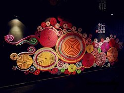 虽在南京东路上,可是不在步行街,而是隔着一条街。所在大厦有Forever 21,算是较显眼,但店家在大厦外没有大的招牌。直达电梯在旁边小巷子里。所以店里生意一般。店面倒是比想象中大了好多。黑色的暗沉主调。但是墙上装饰着七彩之南特有的彩色花纹图案和红色的灯光让环境亮丽起来。过道上有红红的灯笼,点缀着古老的石雕像。大厅一部分是厚实的木桌椅,高高的倾斜椅背,有着特别的样子。另一部分则是宽大的沙发椅。中间是一个小舞台,可能晚上有表演。附设有一个小茶馆,有云南特产的茶叶和土特产。整个环境显得非常有云南风情。店员着民族服饰。不过服务一般,态度不是很热情。有部分地面很粘滑。据说它家的大部分原材料都来自云南,而且主打原生态的菜式。哈尼野生树花(58元):这种树花呈细丝状,较为软,配上脆口的胡罗卜之类,酸甜中带着辣味,蛮爽口的。滇东苗味猪手(48元):口感很好,滑弹中带着脆而且有嚼劲。味道也是酸甜辣的。腾冲老奶洋芋(16元):软软糯糯的,土豆的香中泛着淡淡的奶香,只是味道有点咸。普洱香锅鸡(56元):装在厚的石头砂锅里。色泽金黄,肉质很嫩,也很入味,咸鲜中带着一些甜味。版纳傣味烤罗非鱼(48元):有些地方烤糊了,但还不够酥脆。鱼肉虽较嫩,但不够入味。排骨干巴菌韭菜(68元):肉质较紧实,酱香较浓。还可以。青椒老人头(98元):较为清爽,这种青椒比一般的青椒的色泽浅一些,口感较为酸,不辣带着一点清甜味。老人头是一种菌菇,很是滑弹鲜香。云腿石榴花(48元):第一次吃石榴花做的菜。花熟后变成浅色,脆脆的滑滑的,香甜中有一点点涩味。白灼板蓝根(28元):原来板蓝根冲剂的前身是绿色的叶子。像是韭菜,有点脆,清香中有点淡淡的苦味。野菜饼(32元):形如太阳花的摆盘。饼很薄,很酥脆,挺香的,蘸上酸辣酱又是另一种滋味。云上云过桥米线(88元):量虽不少,但价格有点贵,特色是加了些菊花,鸡汤味道较鲜浓。饮料是云南特产的酸角汁,酸味为主带着点甜,蛮开胃。总体感觉还是不错的,原生态的食材较为健康,价格也适中。就是菜式整体稍咸了点,而且各种菜的味道差不多,咸酸辣的口味。查看更多