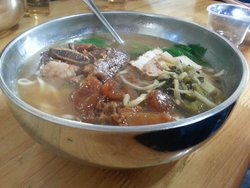 很多人慕名前往的一家店,以牛肉面为招牌,店面看起来还是很普通的,而且面条端上来也就是一个不锈钢碗装着,卖相很一般,点了他家招牌的牛骨面,其实就是牛仔骨炖的,味道还不错的,吃起来还是蛮酥嫩的,汤头感觉比较咸啦,面条是手擀面,比较劲道,总体还可以,没有传说中那么惊艳啦。查看更多