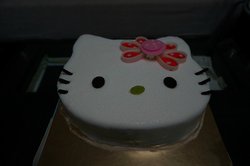 在他们家定了个Hello Kitty蛋糕庆生,一直很喜欢Hello Kitty的造型啦!面包新语还有好多芭比娃娃、汤姆斯小火车神马的蛋糕,绝对吸引小朋友的眼球哦。 大大的Hello Kitty脸,好萌好漂亮啊。切开来,里头鲜奶很薄的说,夹了不少水果,味道不错。不过鲜奶真的是少了些!