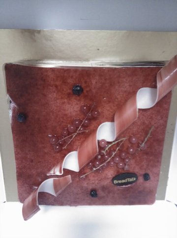 面包新语 BreadTalk提前没有来得及预定蛋糕,当天只能在橱窗里选择了,这个是10寸大小的,同款已经没有8寸了,于是就买了这个蔓越莓口味的慕斯蛋糕,冷冻的很到位,到店里拿出来吃还是凉凉的,口味略带酸味,但是很开胃,吃好饭也能吃得下的味道。…查看更多
