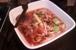 名字很有意思,一看就知道他们家主要是做面食的。有点像味千拉面。番茄牛肉拉面最喜欢了,有酸酸的番茄,牛肉一点也不韧,拉面蛮有嚼劲的,伴着酸酸的汤很好下肚。避风塘豆腐伴着面吃也是个不错的选择,上菜还算蛮快的,店面也蛮干净的查看更多