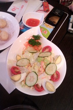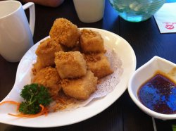 第一次到这家餐厅吃饭,虽然店面看上去不大,但是给我的感觉还不错,服务态度也很好。我首先点了份主食:芳香排骨面,然后点了份甜品:奶茶,还有小吃:烤鸡翅(忘记具体名称了嘿嘿!)和避风塘炸豆腐芳香排骨面,味道不错,看上去有些辣,但是实际上有些偏甜,排骨很大快,哈哈,只是面的分量有些少,典型的碗大量少。珍珠奶茶是我感觉最好的,甜而不腻,味道很香浓,上面的一层泡沫口感很细滑,唯一的缺点就是珍珠不是很Q,可以改进。烤鸡翅的话并没有什么特别的,跟一般的烤鸡翅味道差不多。避风塘炸豆腐很好吃,但是一定要蘸他们配的酱,外酥里嫩的,分量也多,吃起来很爽!到店里点小吃的时候可以考虑它哦!查看更多