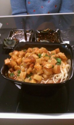 老早以前在老店吃过一次,感觉面酷的面还是不错的,但是如果距离较远的朋友们就别专门来了......我记得有一道菜是什么鳕鱼(羞愧啊~忘了叫什么了~),以前点过那个,清淡得不能再清淡,还比较贵.......来这记得一定要拿走几包醋做纪念,自己在家做面可以放一点,很不错.....来这就吃套餐吧!我以前老要鸡丝套餐,貌似里面有3,4种卤,还有猫耳朵等等