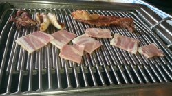 一家韩式烤肉店,工作日中午过去的人真心的不多,很多空位置,服务不错,帮忙烤肉,赠送了南瓜粥还有一些小菜,点了五花肉,肥肉刚好,吃着不柴不腻,不是很肥,这个豆腐特别好吃,有种熏肉的味道查看更多