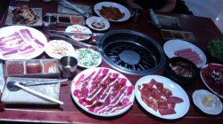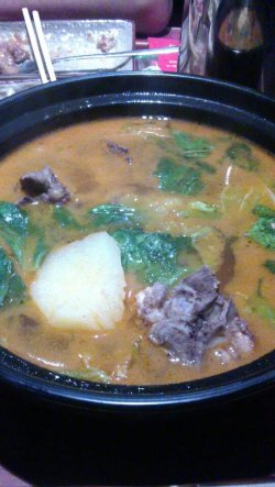团购了套餐去的, 很超值, 量很大, 三个人吃绝对够. 土豆腔骨火锅: 量大, 汤水鲜美.秘制烤牛肉: 无功不过的一道菜 香瓮腌制猪排: 猪肉腌制的很香 烤调味五花肉和 烤五花肉: 量还算好, 瘦肉肥肉配比正好. 巴西烤肠: 很香, 好吃 拌素杂: 类似于海带的菜炒年糕: 吃韩国料理必点的, 辣酱很好吃哦炒什锦粉丝: 这个是最好吃的一道菜了, 美味, 极力推荐.牛肉石锅拌饭: MS牛肉几乎没有.如果不是团购来的话, 感觉会贵, 团购的话还是很超值的. 环境一般, 到处都是油烟, 而且很闷热, 天热不适合去, 空调感觉像没有一样.查看更多
