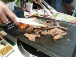 天冷吃烤肉很不错,围着烤盘很暖和,店里的环境挺好的,价格有些贵。烤牛肉比较经典,是必点的,牛肉切的不是很薄,肉很嫩,应该是腌制过的牛肉,烤熟后不蘸调料吃是微甜的,肉比较有嚼劲,吃着非常香。查看更多