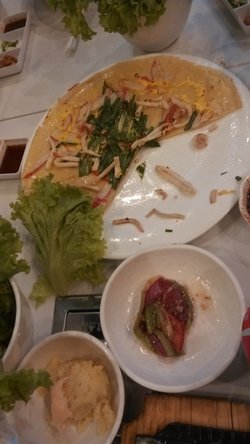 韩时烤肉的烤肉是烤盘不是烤网,这样的油烟比较少,肉不会烤焦,有点肉还会垫着锡纸烤,挺有意思的。果仁菠菜挺赞,里面不光有花生,还有松子和腰果,吃着又脆又香,虽然贵了点,还是挺值的。查看更多