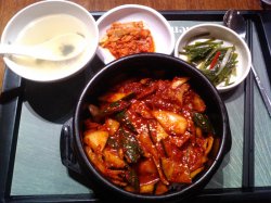 开在芮欧下面的一家韩国拌饭店,楼下一条街类似大食代的小吃街,各式各样都有,这家还蛮不错的。他家的拌饭量很足,选择的品种也很多,个人还是比较倾向于传统的口味。饭上的各类食材摆放得很整齐,颜色也很好看,都是各类的蔬菜切成丝。中间还有个蛋,记得拿到的时候要马上拌,趁饭烫的时候,不然蛋就熟不了了。拌饭的酱料味道不错的,微微辣的口感能接受,就是蒜味浓了点,吃完的话最好来上一片口香糖比较好。另外除了石锅拌饭,只要点了就会配有3个小菜和一碗例汤,虽然东西不多,不过吃吃还是蛮实惠的。…查看更多