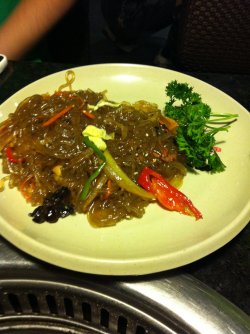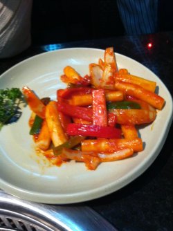 刚落座,就端来了几盘小泡菜。。。五花肉肥肥的还是蛮好吃的~蛮新鲜的,一片一片也算切的适中~肥瘦也算可以~有10多片吧~我的2分是给五花肉的~洛妈与洛洛都蛮喜欢这个肉的~肥牛肉,还可以,肉也蛮嫩的~鸡脆骨,还行~洛蛮喜欢的,洛妈一般~洛妈的主食是辣炒年糕,年糕很糯~洛妈不太习惯吃辣的,虽然年糕是不错滴,但洛妈吃了一半也算不错了~2分也是给年糕的~洛吃的是石锅拌饭,蛮好吃的,量也蛮多的,味道尚可,适中~推荐菜: 五花肉 石锅拌饭 鸡脆骨查看更多