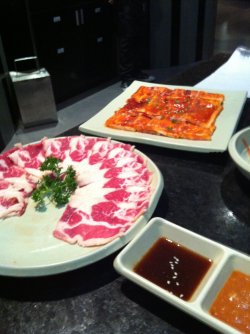 开了好多年的韩式料理连锁店,装修以黑色为主,记得刚刚开业的时候去的,几份主食都是9元,几种烤肉类和食物是对折。现在的话也一直有优惠券,消费满150元减50元,或者是几种烤肉对折。我一般选择满150元减50元。2个人的话,100元出头就可以饱餐一顿。去的比较多的是五角场又一城楼上的这家,感觉地方比万达的那家大一点,人气的话又一城也没有万达人多,所以基本不太需要等位。原本餐前会送南瓜粥和几份开胃小食,小食的话就是泡菜啊,萝卜啊,豆芽菜啊,这类的。上次再去的时候,开胃小食和调料已经变成自助的了。感觉有点奇怪,像是火锅店一样。南瓜粥还不错,其实应该说是南国糊,我有时候会再要上一份。一般2个人的话,我会点上2份烤肉,2份主食,一份汤。每次换个口味,基本上里面的味道也算都尝过了。五花肉系列——就精品五花肉,调味五花肉。一个就是原味的,一个就是事先腌制过的。看个人喜好啦。这家的五花肉还算不错,肥肉相间,不会太过油腻。猪颈肉——这个烤出来很好吃,一点也不会油腻。相反味道比五花肉还香,就是火候掌握也自己控制好,不可以过久,会老了咬不动。牛肉系类——也分原味和调味的,还有调味牛排,牛排的价格贵一点,但是我感觉不太好吃。牛肉的话有时候会过于薄,口感一般。韩式炒年糕——这家的炒年糕的辣度应该是改良过的,比较适合上海人的口味了,所以就算不会吃辣的人也不用担心,因为不是很辣,里面还有点鱼饼。辣牛肉粉丝汤——这个汤辣粉应该放了很多,里面有粉丝,牛肉片,金针菇,一个鸡蛋和一点配菜。还配有一碗白米饭。我觉得满开胃的。韩式炒粉丝——山芋粉丝配上一点杂菜,炒的味道还不错。我满喜欢的。石锅拌饭——种类很多,其实就是里面的配料有点不同,味道都是一样的。还算不错。韩式炒饭——其实就是泡菜味的炒饭,里面没有什么料,相比还是石锅拌饭比较划算。韩式拌面——本来也是是炸酱面的,其实也就是干的冷面,面倒是很劲道,但是很难吃,应该配一把剪刀剪的,不然连着不断。饭后有送冰淇淋或者小的甜品,结账处有口香糖可以拿。想吃烤肉了,基本会想起这家,味道还行,价格也不贵。只是有时候发挥不太稳定,只能说是运气问题啦。查看更多