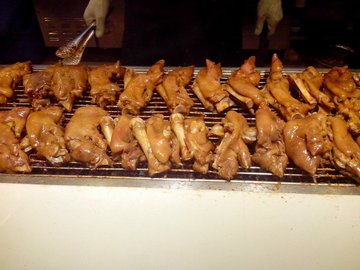 每次路过这家店,总看见排队的以前不喜欢吃烤猪蹄的,总觉得很伤人后来吃了几次猪蹄后觉得还可以但是吃多了还是会觉得很伤人这家猪蹄烤的外表看起来很焦香,感觉不是很入味虽然也软了,但和吃的别家的比起来,也没有多大的特色还经常排那长的队,,,感觉不值得一般吧,只能说,比它家好吃的还有很多~…查看更多