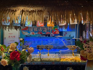三文鱼 / 基围虾 / 生蚝 / 扇贝 / 小龙虾 / 蒸汽海鲜
